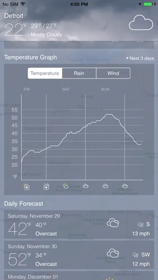 Track the weather changes on the interactive map and follow the accurate weather charts to view the pressure, humidity, and wind direction/speed among other weather details