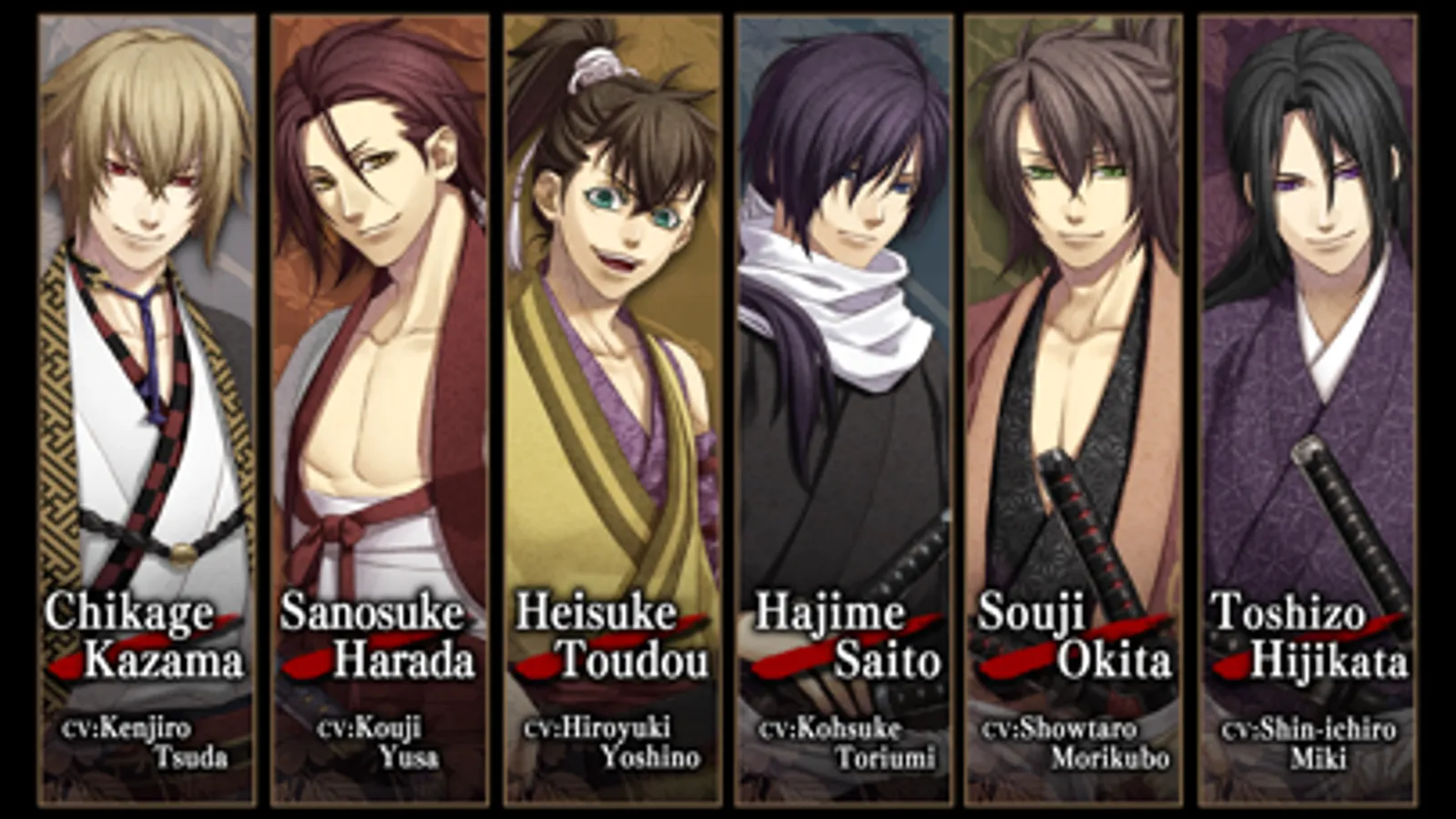 Toshizo Hijikata(CV:Shin-ichiro Miki)/Souji Okita(CV:Showtaro Morikubo)/Hajime Saito(CV:Kohsuke Toriumi)/Heisuke Toudou(CV:Hiroyuki Yoshino)/Sanosuke Harada(CV:Kouji Yusa)/Isami Kondou(CV:Toru Okawa)/Keisuke Sanan(CV:Nobuo Tobita)/Shinpachi Nagakura(CV:Tomohiro Tsuboi)/Kodo Yukimura(CV:Ryugo Saito)/Chikage Kazama(CV:Kenjiro Tsuda)/etc