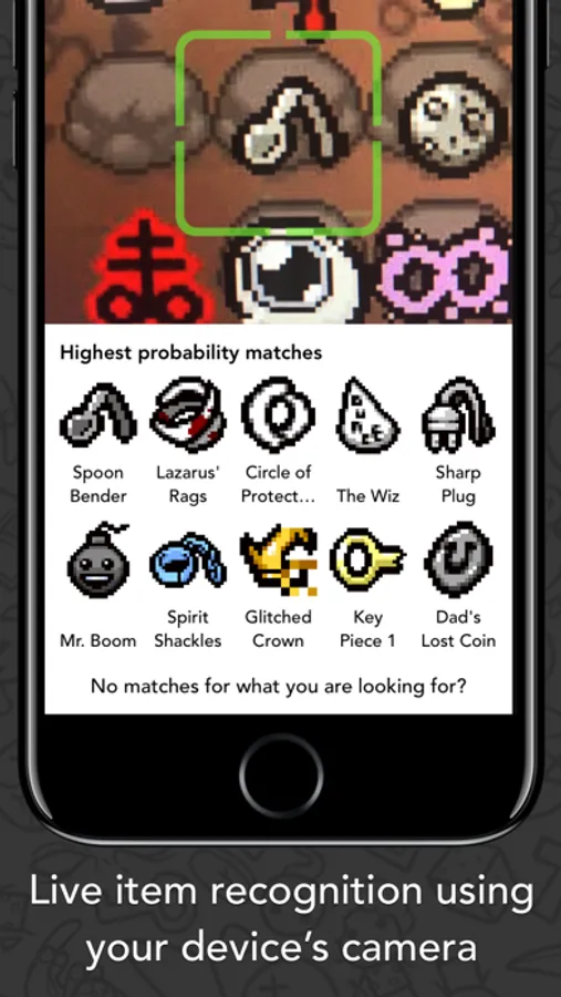This app is not associated, affiliated, endorsed, sponsored, or approved by Edmund McMillen or Nicalis Inc.