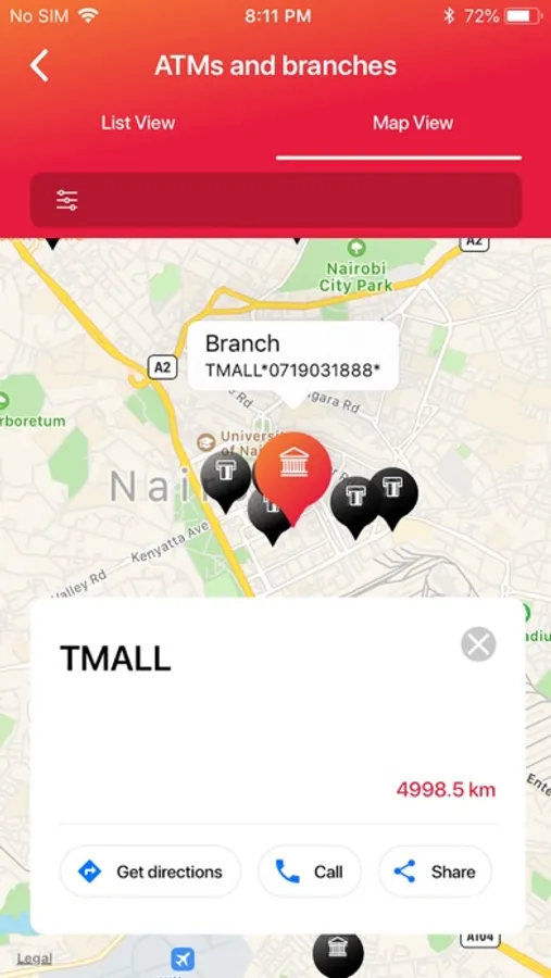8. Locate all branch and ATM’s close to your current location.