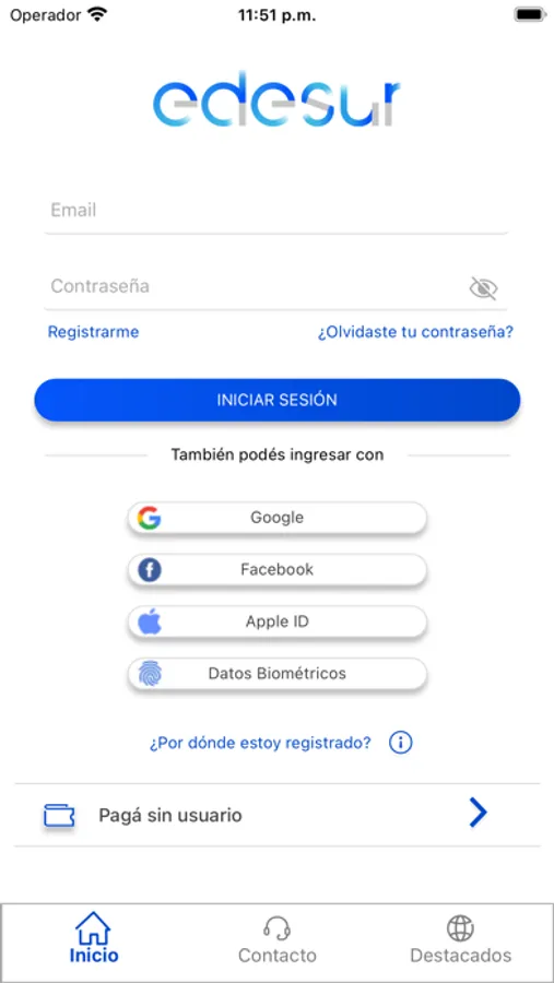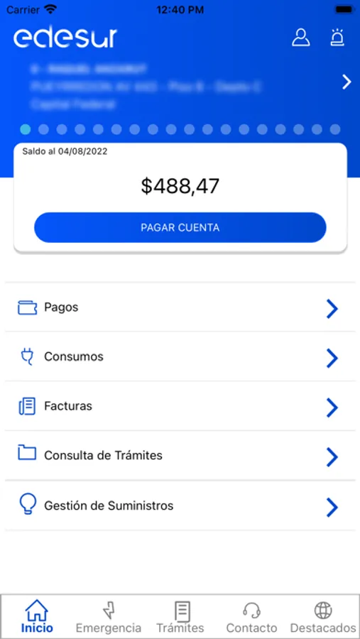 Bienvenido a EDESUR. Con nuestra APP vas a poder gestionar tu cuenta de manera rápida, fácil y segura. Podrás abonar tus facturas, crear trámites e iniciar gestiones. También conocer tus consumos, ver nuestros puntos de contacto, adherirte a la factura digital y ver las zonas en las que nuestro equipo técnico se encuentra trabajando. También realizar cambios de titularidad y adherirte al débito automático.