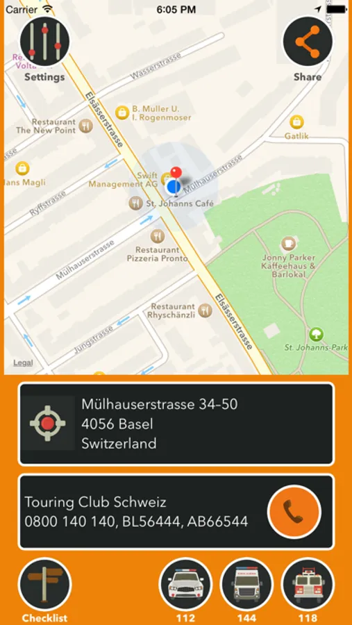 To make it easy, the apps shows you exactly where you are in form of coordinates and an address, so you can tell the service company where to come and save you.