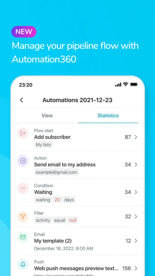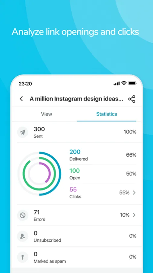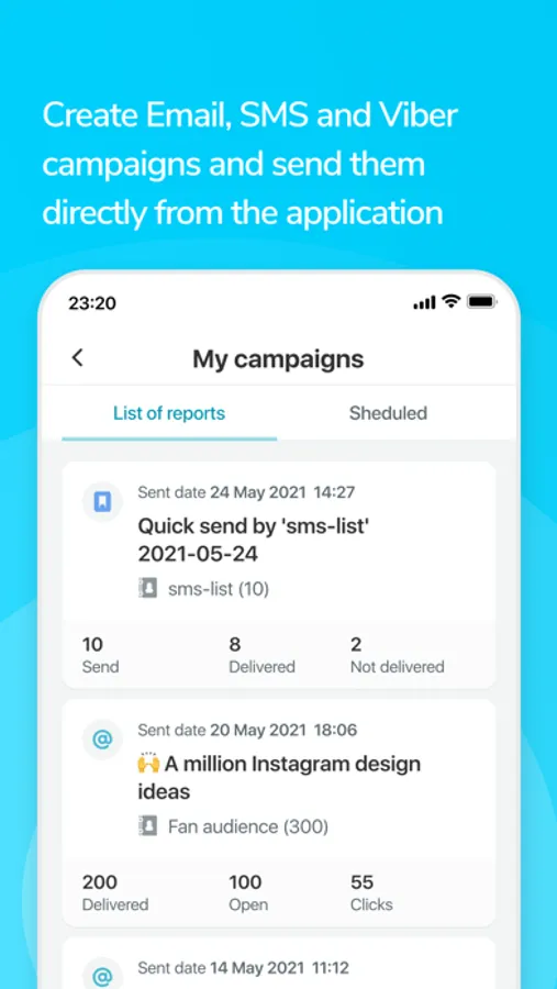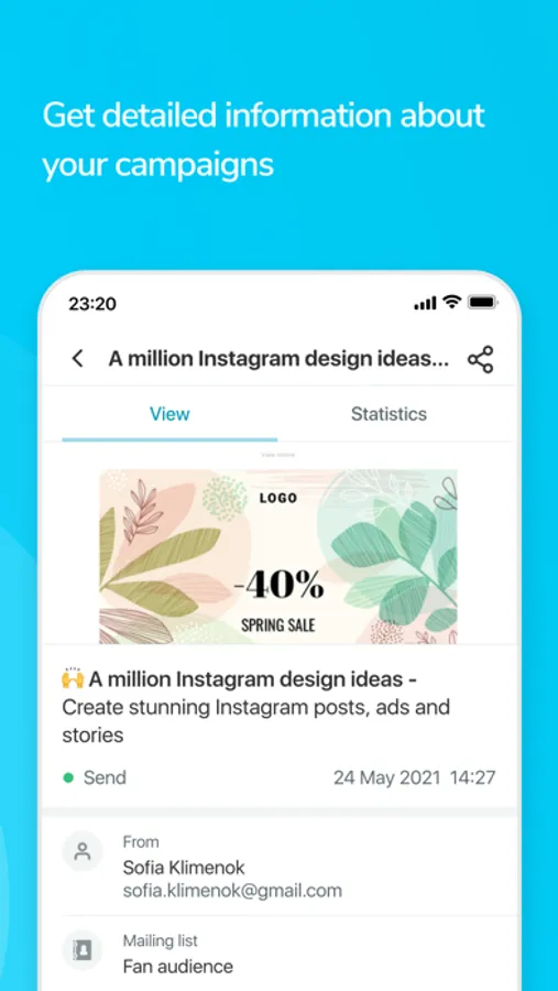 The SendPulse app allows you to add subscribers to your lists, send email campaigns, and view detailed reports and analytics. You can create a campaign on your desktop and send it later from your iPhone or iPad.