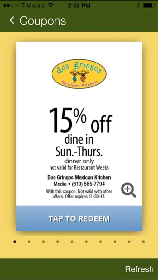 Save some dinero when you download the free app for Dos Gringos Mexican Kitchen. You can keep up to date, peruse the menus, make reservations or score some merch – all from the touch screen of your mobile device. And remember to BYOT and try some of Dos Gringos’ delicious mojito and margarita mixers like papaya pineapple, enjoy Taco Tuesday and their award winning guacamole!