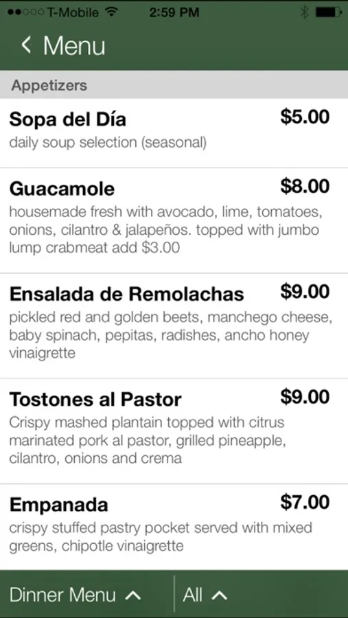 • Menus including lunch, dinner, kids, take-out, catering and Taco Tuesday. Saturday brunch, too