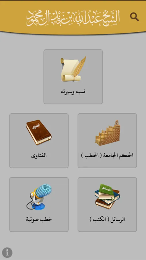 يحتوي على نسبه وسيرته، رسائل (كتب) الشيخ، خطب صوتية، صفحة تويتر الشيخ، الفتاوى، الحكم الجامعة (الخطب)