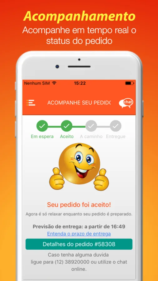 3. Seu pedido será confirmado em poucos segundos e sua comida enviada pelo restaurante.