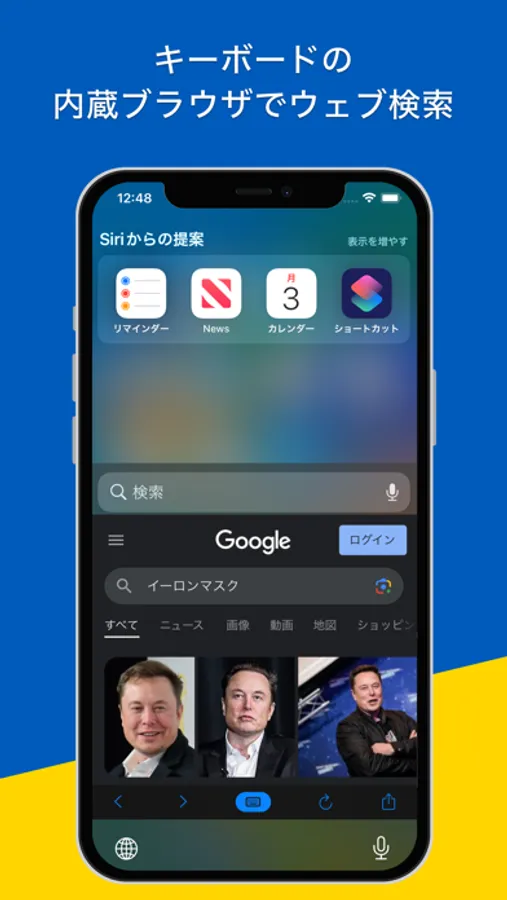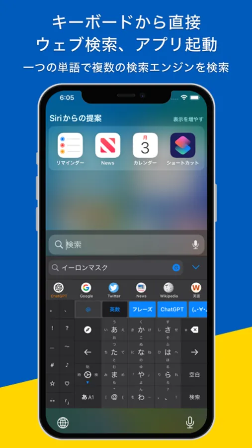 Search multiple web search engines with a single keyword and display them in the keyboard's built-in browser or Safari.