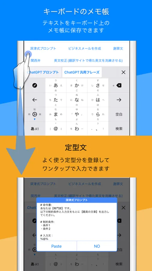 You can save a large amount of text, such as prompts for ChatGPT, etc., to Notepad on the keyboard.