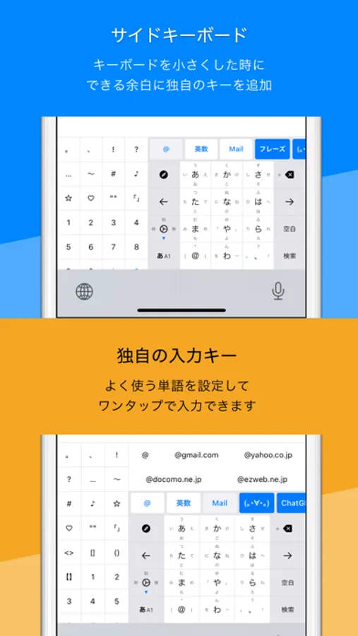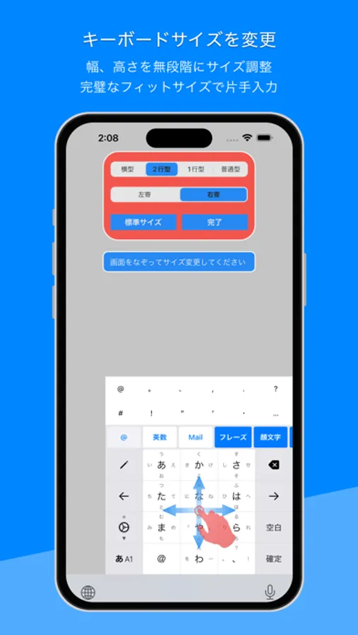 The keyboard size can be adjusted in millimeter increments to fit the size of your hands. You can comfortably type with one hand on a large screen iPhone or iPad.
