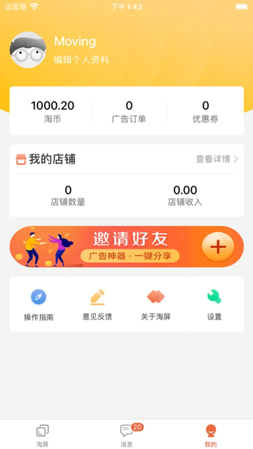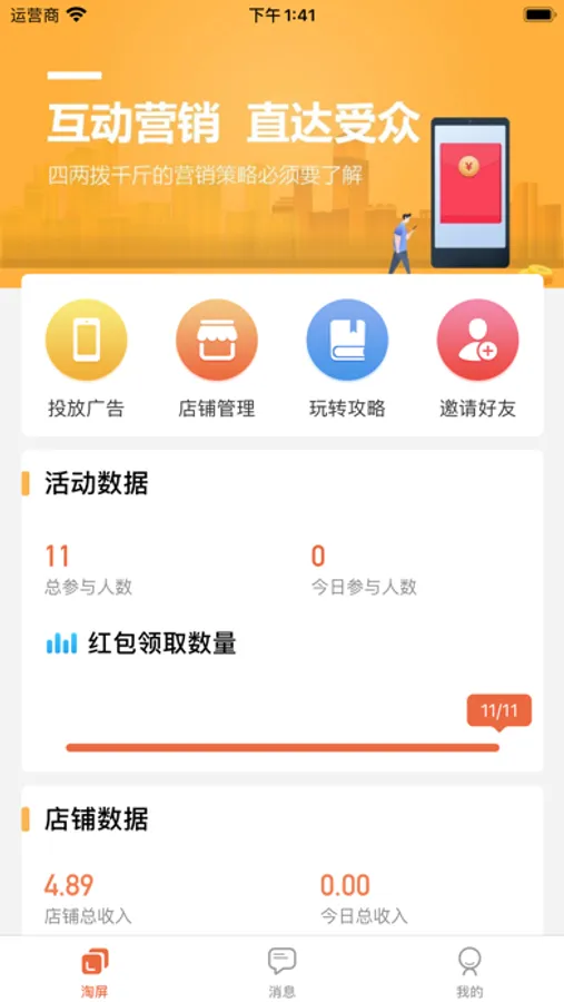 淘屏是一款电商应用,包含购买屏幕,通过已支付的订单下发节目等功能。