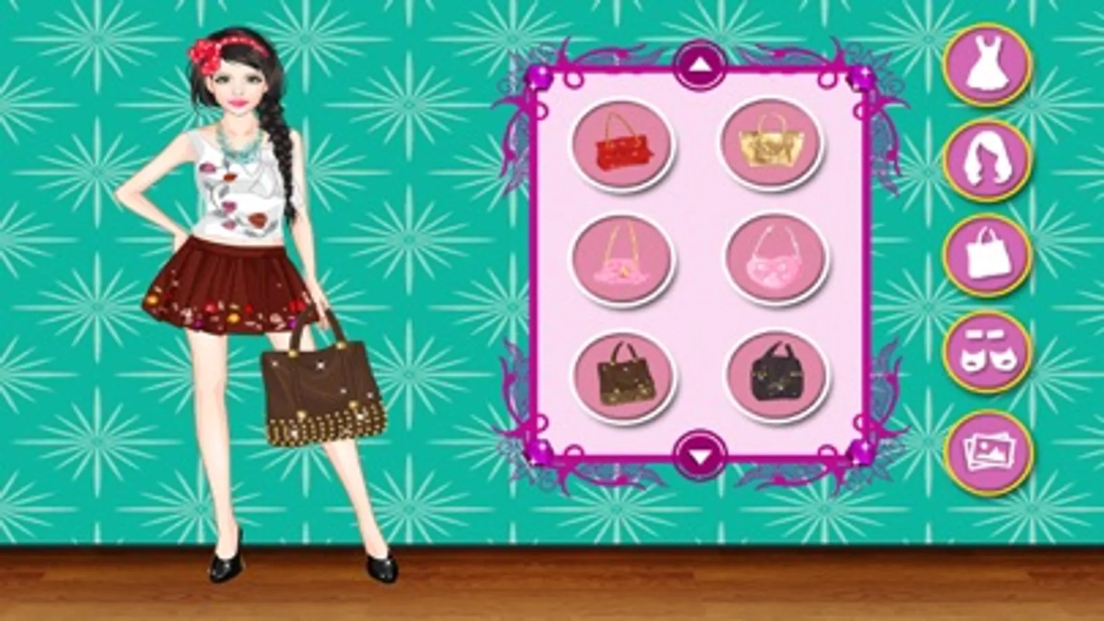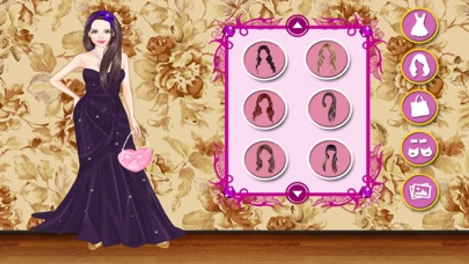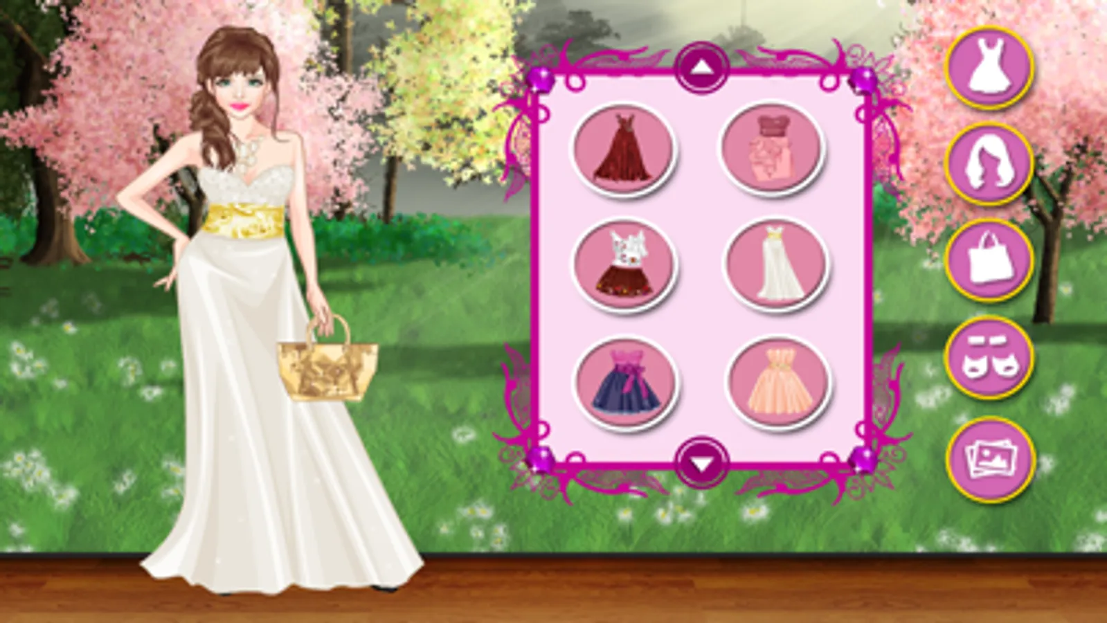 Select the hair, dress, shoes, purse and background according to your imagination that suits your Princess best and dress her up. And after that, select the background for the Princess you dressed up with the suitable one.