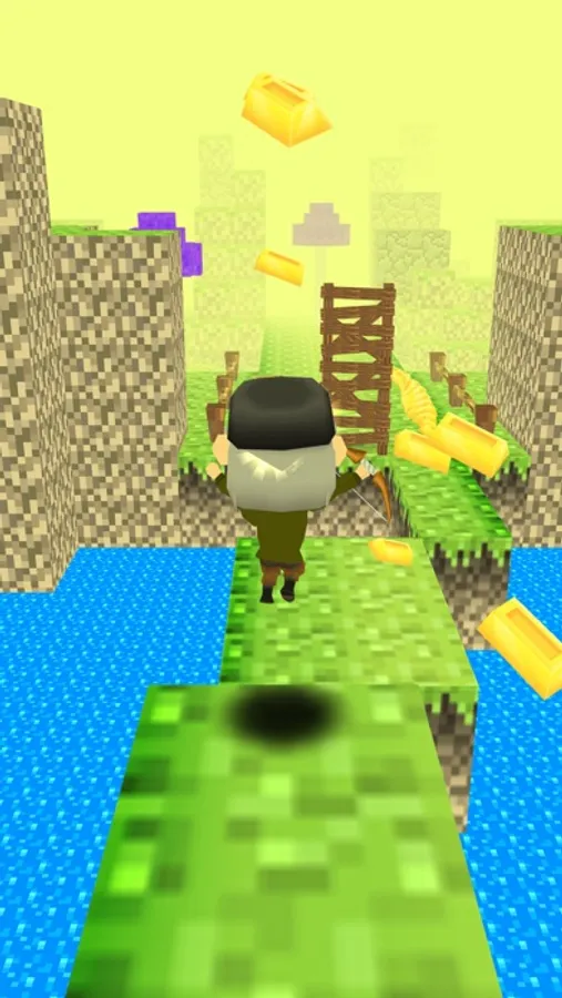 - Very simple touch controls: move left to right, jump, slide, swing, tap to launch an arrow