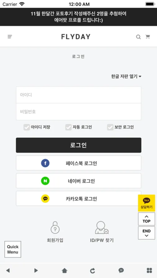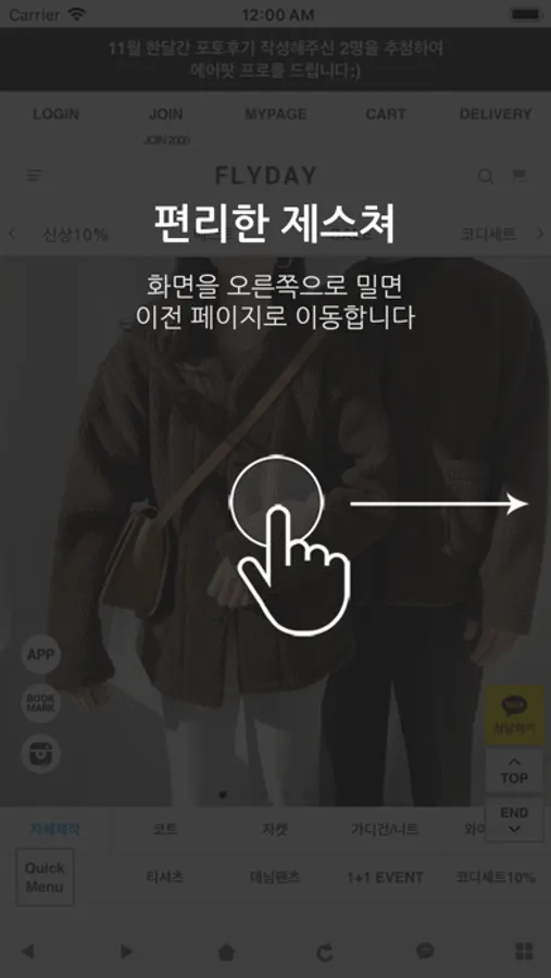 플라이데이의 게릴라성 이벤트와 각종 소식을 PUSH 기능으로