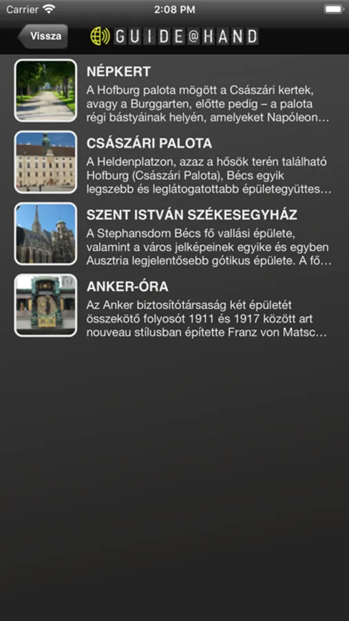 ENGLISH: GUIDE@HAND‘s full audio sightseeing content, tourist information, map and software is currently available in Hungarian. English and German language support is coming soon.