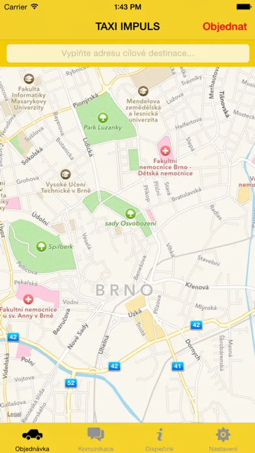 Jednoduché, rychlé a úsporné objednání taxi prostřednictvím Vašich chytrých telefonů, které disponují připojením k internetu. Mobilní aplikace je dostupná ZDARMA. Uživatel této aplikace už nemusí volat na dispečink a komunikovat s dispečerkou, nemusí znát svoji adresu nebo polohu. Naše aplikace to vyřeší za Vás na základě signálu GPS, který spolehlivě určí Vaši startovní pozici pro přistavení našeho nejbližšího vozu v dané lokalitě. Po objednání můžete na mapovém prohlížeči aplikace sledovat pozici přijíždějíciho řidiče včetně časového údaje příjezdu, popřípadě si zjistit přibližnou cenu po zadání cílové adresy a mnoho dalších výhod.