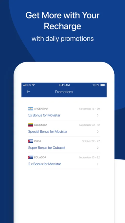 Get tens of daily promotions that will double or triple the top up to any Airtel, AT&T, Claro, Cubacel, Digicel, Lime / Flow, Movistar, MTN, Orange, Telcel, Tigo, T-Mobile or other operators’ prepaid numbers.