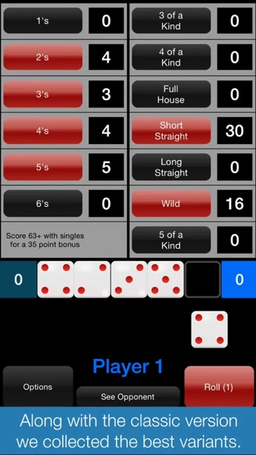 Generala - Also known as Generals this version is very popular in Central and South America and give bonuses for scoring a category on the first roll. Played with 5 dice.
