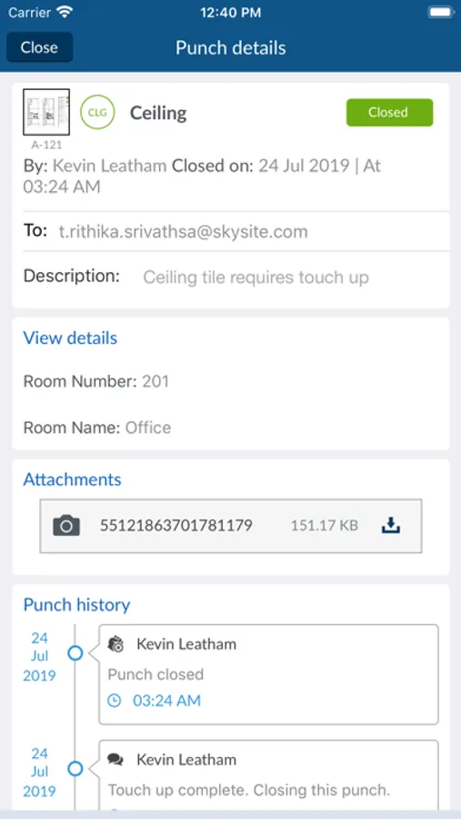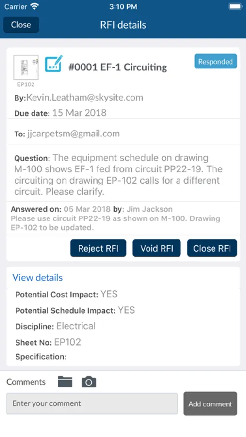 This contractor app allows you to version your drawings and specs by the revision date as it shows on the title block of your documents. SKYSITE’s "Latest documents" feature automatically creates the current drawing set for your project. Markups automatically sync to all users in real time. Upload and store unlimited documents. Offline sync lets you view documents, markup, create punches, and RFIs, all while you are still at the jobsite, even without internet access.