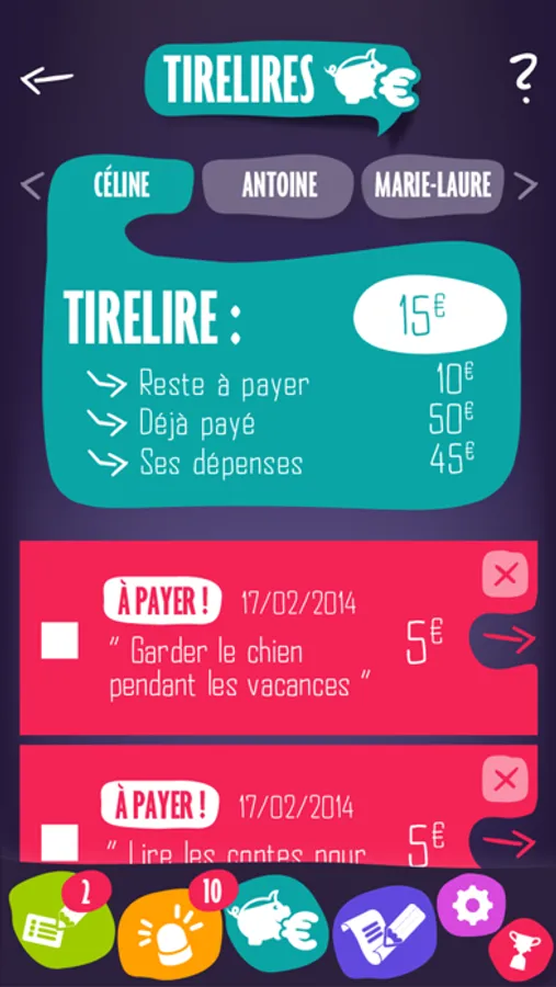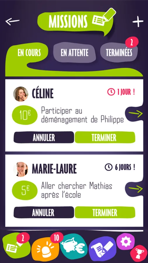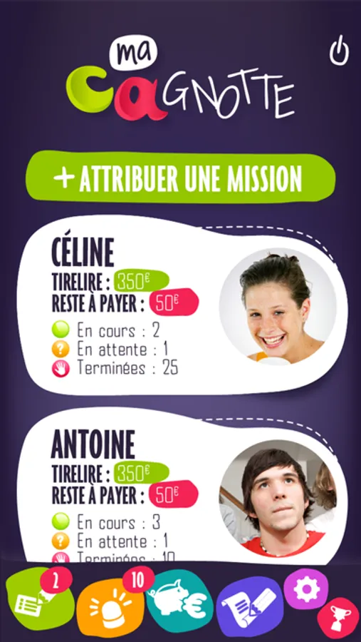 - Les enfants gagnent leur argent de poche en remplissant des missions fixées par leurs parents