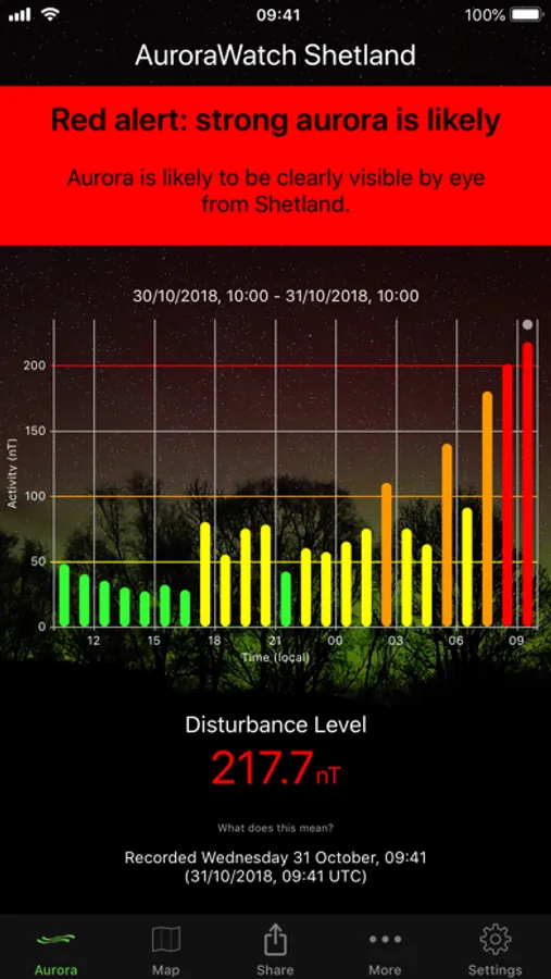The AuroraWatch UK app for iOS is written, run and maintained by Neil Morton at Progress Concepts Limited, in association with AuroraWatch UK, giving you the data at your fingertips on your iPhone, iPad or Apple Watch, and delivering free real-time alerts whenever aurora is likely to be visible from the UK.