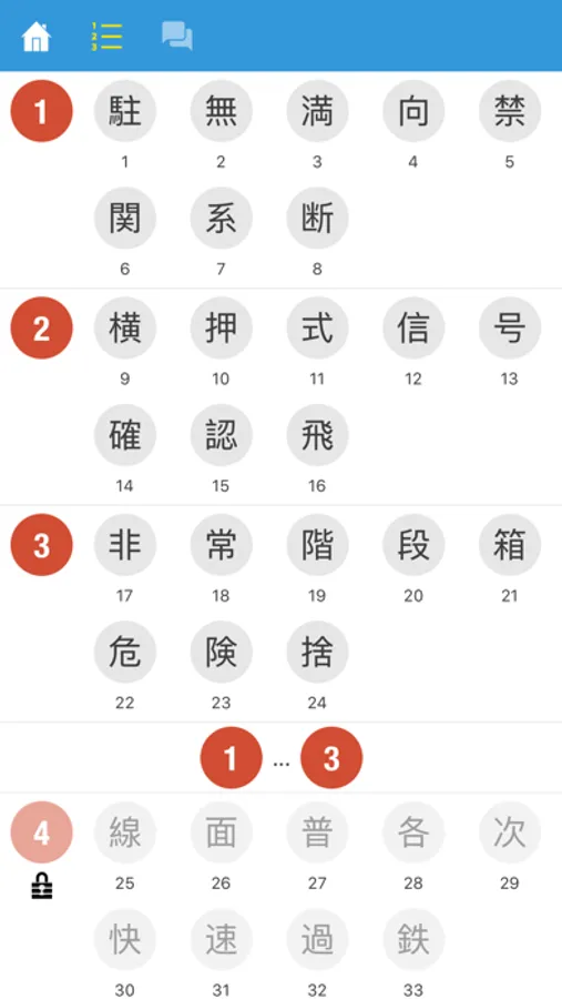 - Kanjis are grouped by grade and JLPT and subdivided into sets of 42 for easy practice.
