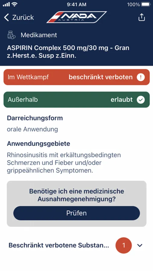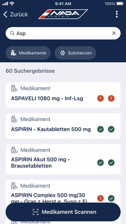 Verboten oder erlaubt? Medikamente und Substanzen einfach und unkompliziert prüfen! Die "MedApp" der NADA Austria hilft Sportler:innen sowie deren Betreuer:innen, Trainer:innen, Ärzte:innen und Eltern österreichische Medikamente einfach und schnell auf verbotene Substanzen zu überprüfen. Zudem lassen sich nun einzelne e-Learning Angebote der NADA Austria einfach in der App abrufen. So kann beispielsweise schnell überprüft werden, ob für ein verbotenes Medikament eine Medizinische Ausnahmegenehmigung beantragt werden kann.