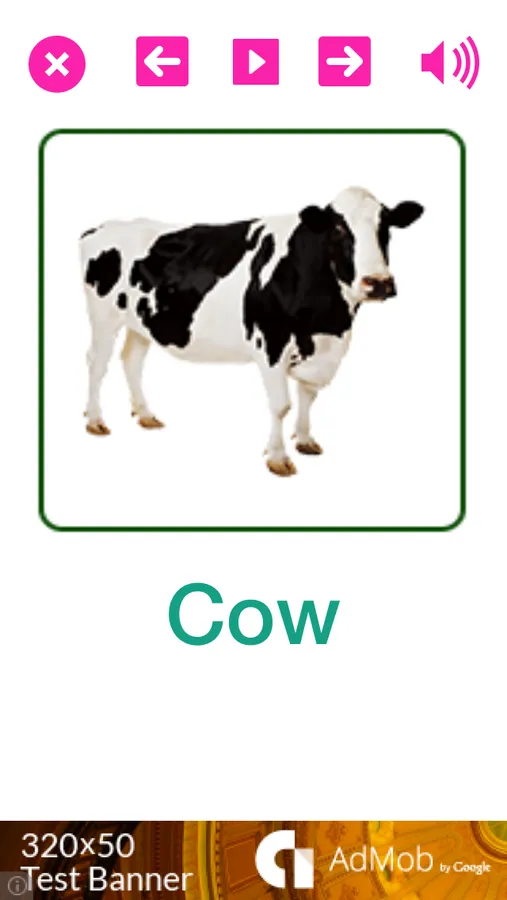 Just click on an animal and the app will display an image for the animal beside you will hear its name and sound.