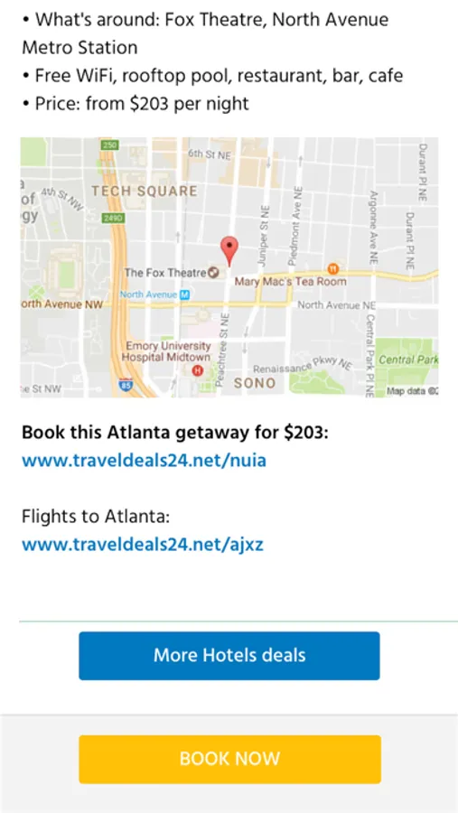 We have the best travel deals to suit your needs and we also show you which of these deals leave from a departure airport nearby or which hotels deals are available within a certain radius around you. Download our app and you are one click away from having all this information at your fingertips!