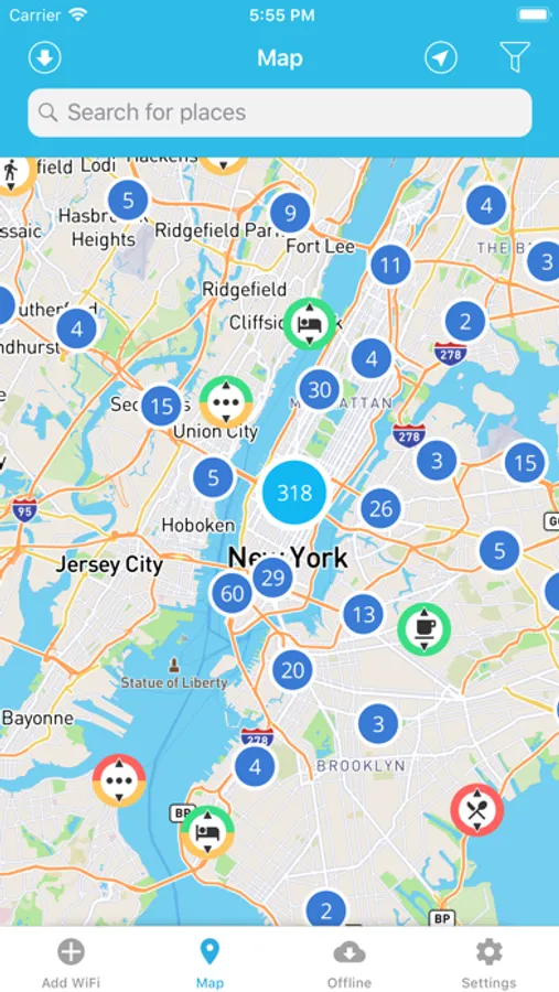 Find Fast WiFi wherever you go with the SpeedSpot WiFi Finder with Offline Maps. The Offline functionality makes it possible to download places that you are traveling to, so you can find Fast WiFi anywhere. The WiFi Finder is getting its data directly from SpeedSpots crowdsourced database of hundreds of thousands of WiFi Hotspots around the world. It is the only database that shows you WiFi rated by Hotspot Speed.