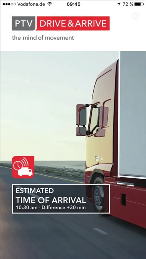 The PTV Driver App is a complementary tool for the calculation of road transport arrival time. The app serves as a demonstrator and testing tool for customers with the PTV Drive&Arrive cloud service. On the basis of your shipment's position, which is sent by the app, PTV Drive&Arrive computes the exact expected arrival time of your shipment and automatically informs all registered participants.
