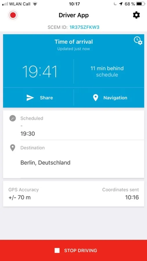 PTV Drive&Arrive is the solution! The app service automatically informs in real time all the participants of the logistical supply chain about the expected arrival time (ETA, Estimated Time of Arrival) of the shipments, so that they can quickly and dynamically react to it. The arrival time is calculated continuously and takes account of all relevant factors such as traffic, permanent closures, driver drive and rest periods, border waiting times, and truck-specific gangways. So that the arrival time can be exactly calculated based on the current location of the shipment, the driver automatically sends their position via the PTV Drive&Arrive Driver app (available here) and consequently supplies the decisive calculation component.