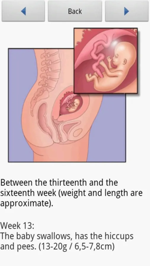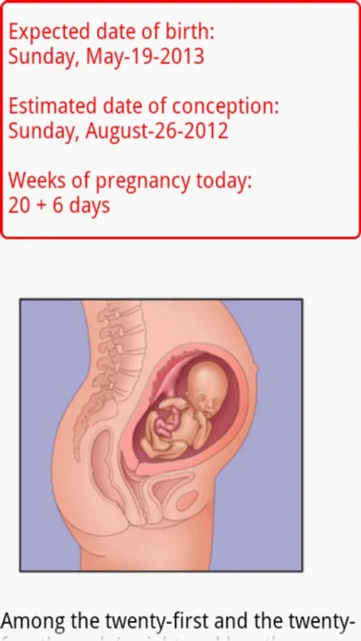 The application also displays a variety of useful information regarding the status of the child during the nine months of pregnancy.