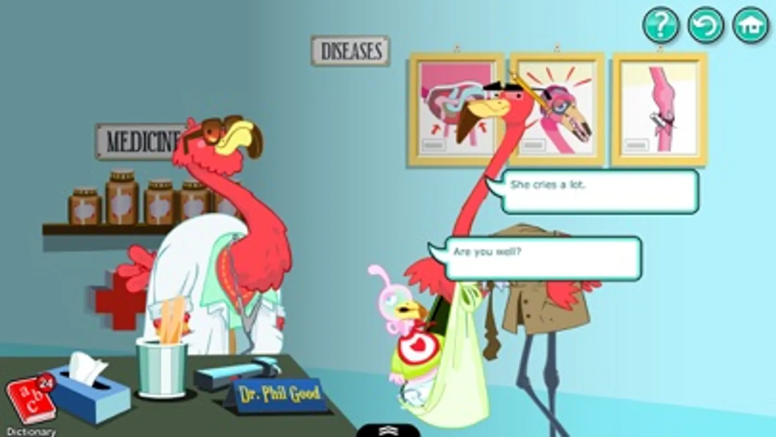 The main focus of the Mingoville The Body app is teach the children the names of the five senses, the different body parts and some common illnesses. Additionally, the children learn how to describe themselves as well as other people.