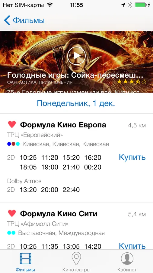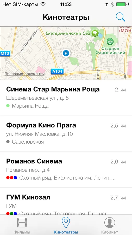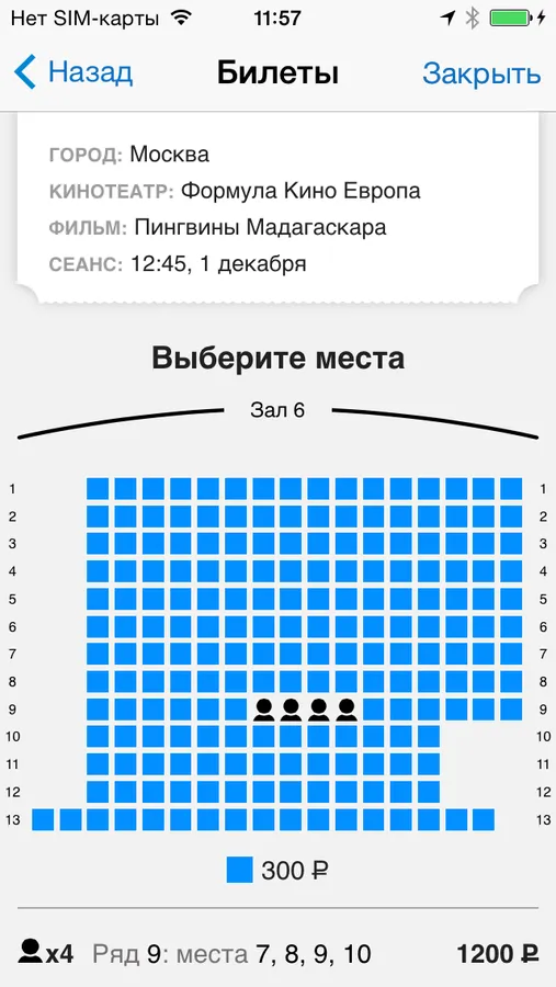 Приложение для покупки билетов в кино специально для студентов МГИМО! Выбирайте лучшие места в кинотеатрах Москвы, узнавайте расписание сеансов и покупайте билеты онлайн без наценки и очереди!