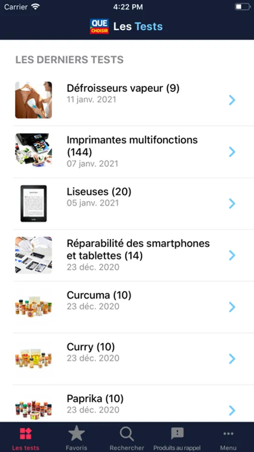 - L’application Tests Comparatifs de Que Choisir permet, si vous êtes abonnés à notre site Internet Que Choisir, d’accéder aux résultats de nos tests directement depuis votre smartphone.
