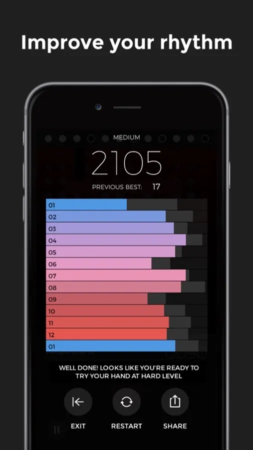 The game that improves your rhythm by challenging you to play Steve Reich’s groundbreaking work Clapping Music – a piece of music performed entirely by clapping. Tap in time with the constantly shifting pattern, and progress through all of the variations. If you slip up or your accuracy falls too low, it’s game over.