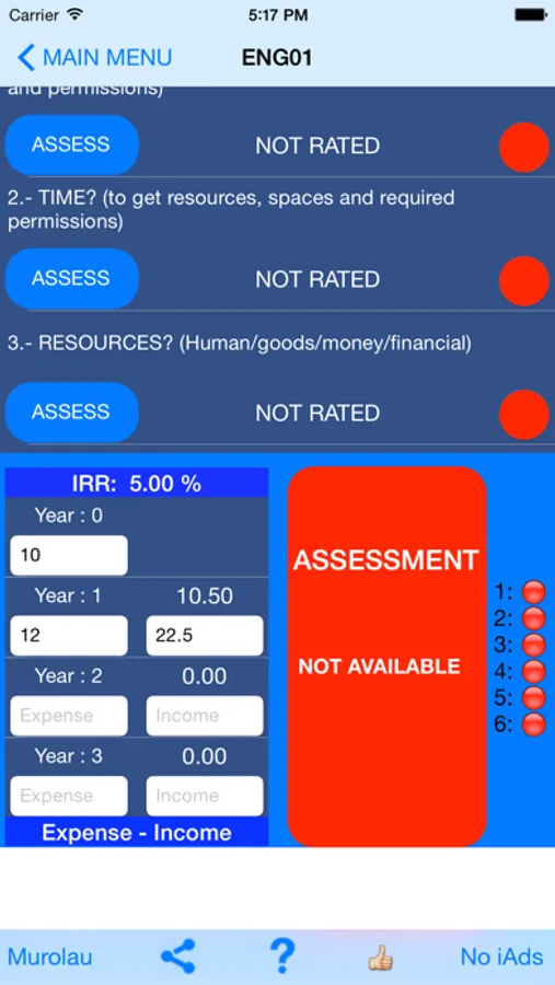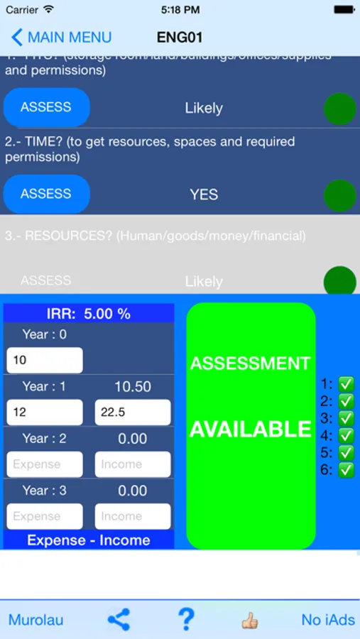 Questions 2-4-6 and IRR calculation are free for test. Buy Full iDecision© Method to get full functionality.
