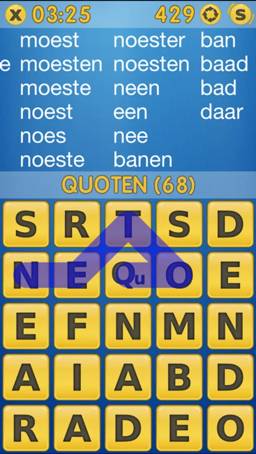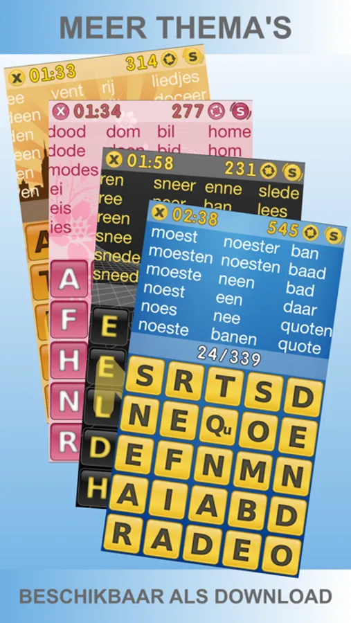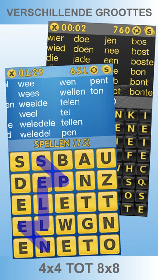 Hou je van woordzoekers? Dan ben je met Word Shaker NL zeker aan het juiste adres. Zoek woorden in alle richtingen op een grootte bord naar keuze. Bepaal ook hoe lang je jezelf de tijd wil geven om je eigen scores te verbeteren. Competitief aangelegd? Geen probleem hoor! Je kan gemakkelijk anderen uitdagen en er zijn ook toernooien om het uur waarin iedereen hetzelfde bord voorgeschoteld krijgt om elkaar de loef af te steken. Je zal niet snel uitgespeeld raken, want als je niet meteen meer woorden vindt, kan je ook de boel draaien voor een nieuwe kijk op het bord, of schud alle letters goed door elkaar voor nieuwe combinaties!