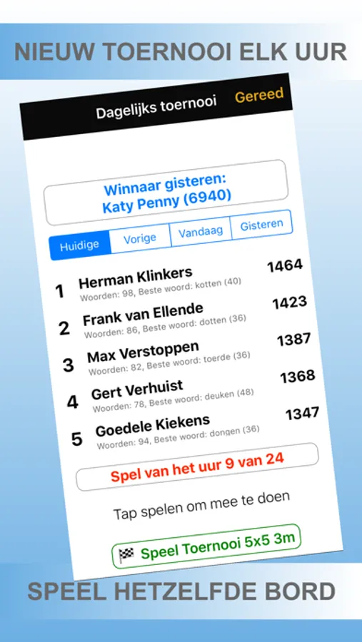 - Dagelijkse, wekelijkse en all-time ranglijsten