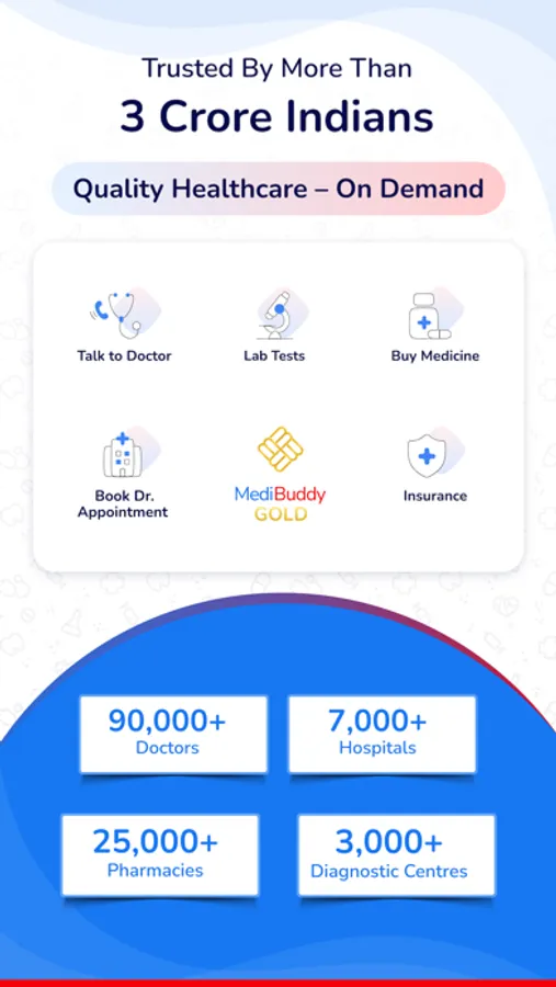 We help 35,000 users a day with their healthcare needs. Our 90,000+ onboarded doctors offer 25,000+ consultations daily. 7100+ clinics & hospitals are registered with us to serve fellow Indians. Additionally, we deliver 10 lakhs+ corporate health checks annually & 15 lakhs+ pharmacy orders. We have facilitated more than 15,000 surgeries till now.