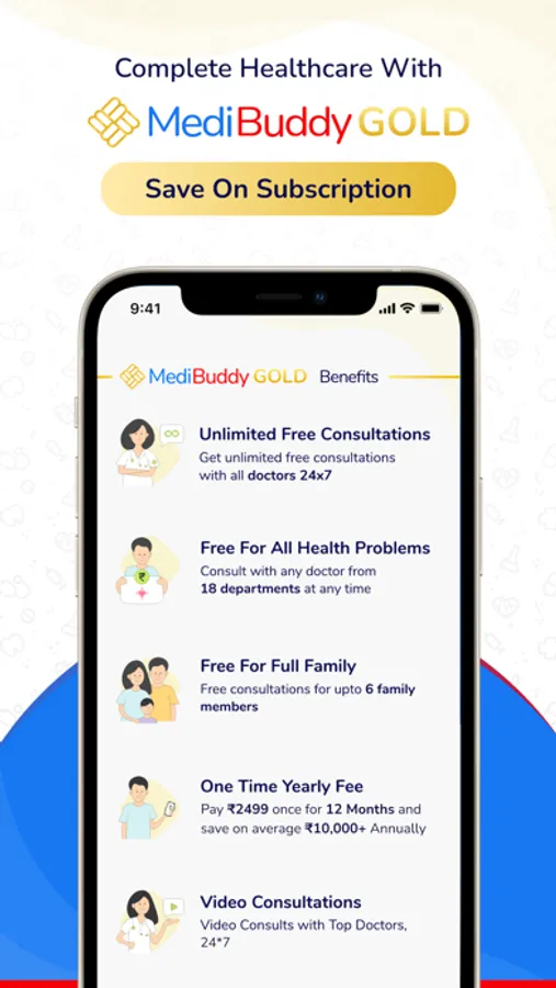 MediBuddy lets you book online doctor consultations from the convenience of your home in just 10 mins. For you and your family, MediBuddy Gold offers unlimited consultations with a qualified physician for your family (4 adults and 2 children).