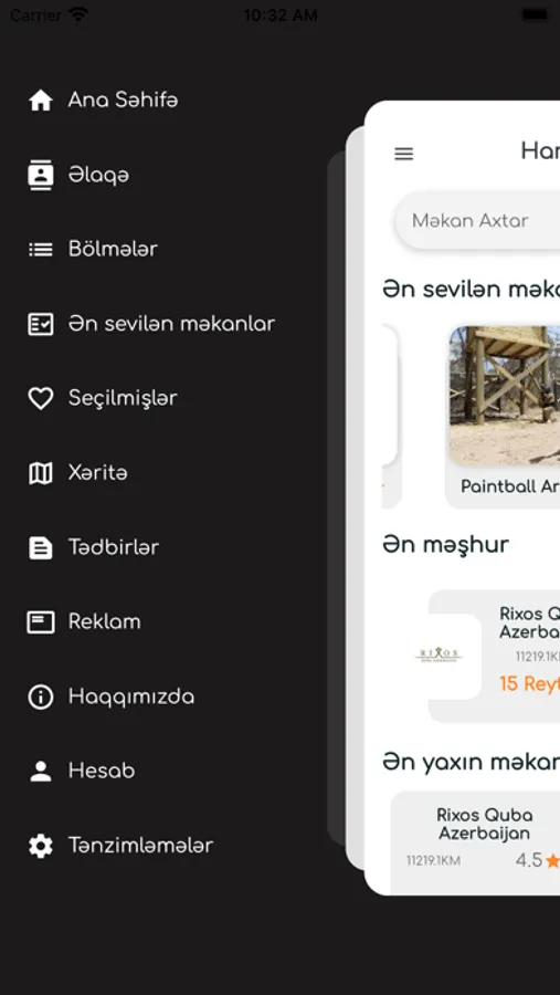 Xerite xüsusiyyeti vasitesile siz olduğunuz erazi etrafında en yaxın yerleşen mekanları göre bilersiniz.