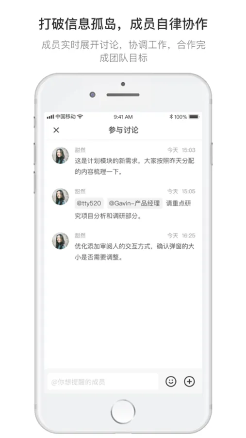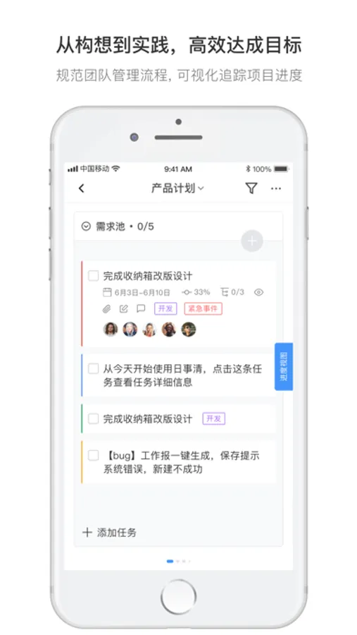 • 团队协作:帮助团队管理者分配任务,监督执行,统计工时,让团队工作事事落实到人、事事有追踪、有考核结果的期限、后续结果有反馈。