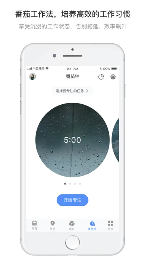 • 番茄专注:自定义专注时长和休息时长,并融合多种声音场景,打造独属于自己的专注空间,快速进入心流状态。