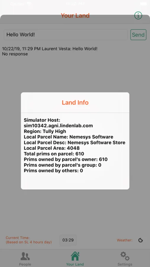 NOTE: the server is needed to send messages to your friends in Second Life. However, the server is only guaranteed to work on land you purchased directly from Linden Lab. If you purchase land from 3rd parties, it may or it may not work. If you are renting land, it may or may not work. It depends on the permissions given to you by your landlord. Since this is a no-transfer object, no refund will be given. Keep in mind that messages you send to your friends will appear in their main chat window, NOT in the IM window.