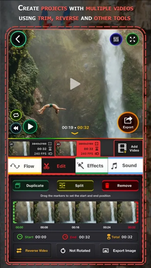 Take control of the speed of your videos. Flow let you manipulate time and give you new perspectives on your recorded moments.