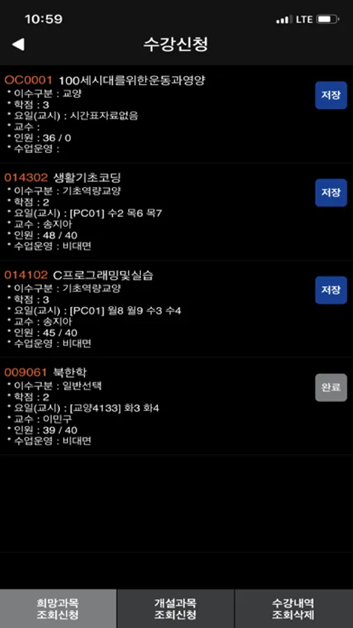 ■ 웹 수강신청과 중복 사용이 불가능 합니다.