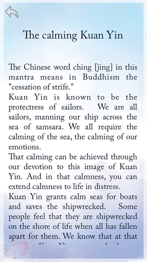 This app personally introduces you to Kuan Yin and how, through her 33 manifestations and mantras, she can help you with various spiritual goals in your life, whether it be overcoming turbulent emotions, increasing your compassion, or seeking protection from your own unreal self. Kuan Yin's mantras also help to mold and soften your heart, and to bring balance, care, compassion and mercy into your life. Open your heart to Kuan Yin and see how she will transform your life through her love and practical tools for your spiritual journey.