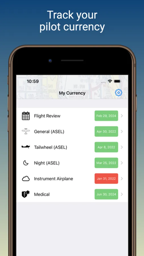 Ready to fly? Are you current? Flight Currency lets you know, at glance, if you are legal to fly as pilot in command.